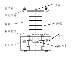 3、把被檢物料放入*上端的標(biāo)準(zhǔn)篩具里,(或蓋上標(biāo)準(zhǔn)篩具上蓋)然后用套在絲柱上的篩分頭壓住標(biāo)準(zhǔn)篩具,旋緊絲柱上的螺母來壓緊標(biāo)準(zhǔn)篩具。(注意:兩側(cè)要用力一致,然后用鎖定螺絲鎖緊。)